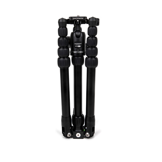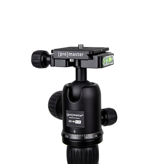 The ProMaster XC-M 522 tripod's 5-section, transverse legs fold 180°, making the entire unit just over 12" long for storage and travel. Yet, fully extended it reaches a comfortable working height. Each leg's angle and length are independently adjustable, allowing the XC-M 522 to properly support your camera on uneven ground. Its dual-action ball head is strong, precise, and lightweight with an independent pan control. It has an integrated Memory Lock dial that enables you to set the level of tension for the ball joint to best suit your preferences and the weight of your camera rig, and uses ProMaster's Dovetail quick-release system (Arca-type) for a fast and secure camera connection.