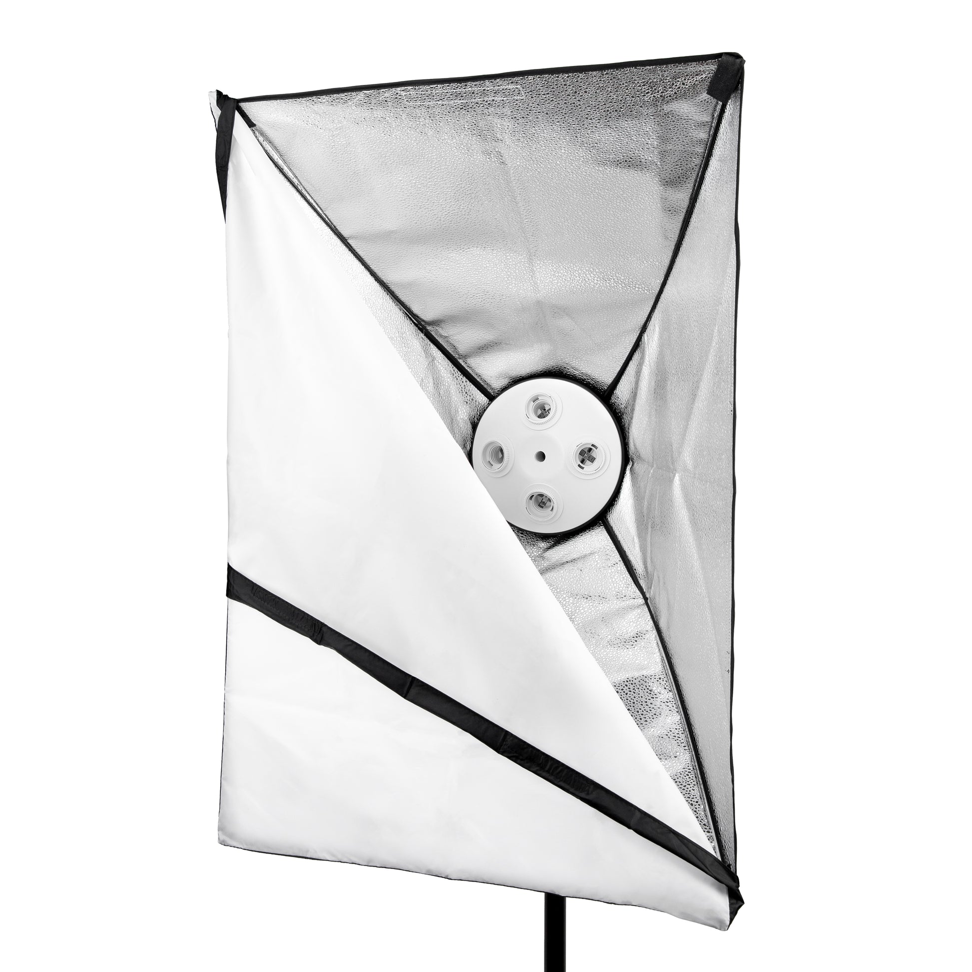 The ProMaster 2 Light AC Softbox Kit XL provides bright, soft illumination for your photography and videography. Four E26 / E27 sockets in each light head are compatible withh photographic LED and CFL Edison-style lamps. The heads are extra-large to accept big lamps or small. Using toggle switches on each light you can switch each lamp on or off independently of the others. The large softboxes (included) mount directly to each light head (no speed rings necessary). An integrated tilting bracket and handle on each light head makes it easy to direct, and a center slot accepts a photographic umbrella (sold separately) for illuminating large groups.