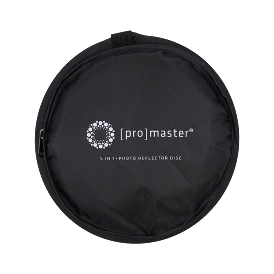 This ProMaster 5 in 1 42” Collapsible Reflector stores at less than 15” but opens to a full 42” diameter. It includes a reversible 2-sided zip-on cover to achieve 5 types of fabrics in total. The translucent fabric softens harsh light and reduces contrast on your subject. The metallic silver side produces a bright, hard light with increased contrast and specular highlights. The gold produces a soft, warm light. The white surface produces a soft, neutral light. Finally, a black surface can be used to absorb light and reduce reflections as well as pull-down highlights.