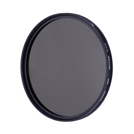 Reducing light to control exposure is the job of a neutral density (ND) filter. A variable neutral density filter (VND) replaces numerous ND filters by allowing you to change the amount of light it holds back with a simple twist of its ring. A ProMaster Basis VND filter can reduce light by as little as 2 f-stops or as much as 8. And it can be adjusted to any amount in between these values.