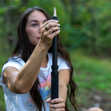 The 3-leg base has also been designed for speed and ease of use. Just pull out on one leg and the entire base fully deploys itself. Pull up on the integrated key ring and the base closes instantly.