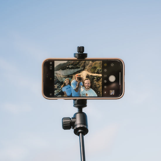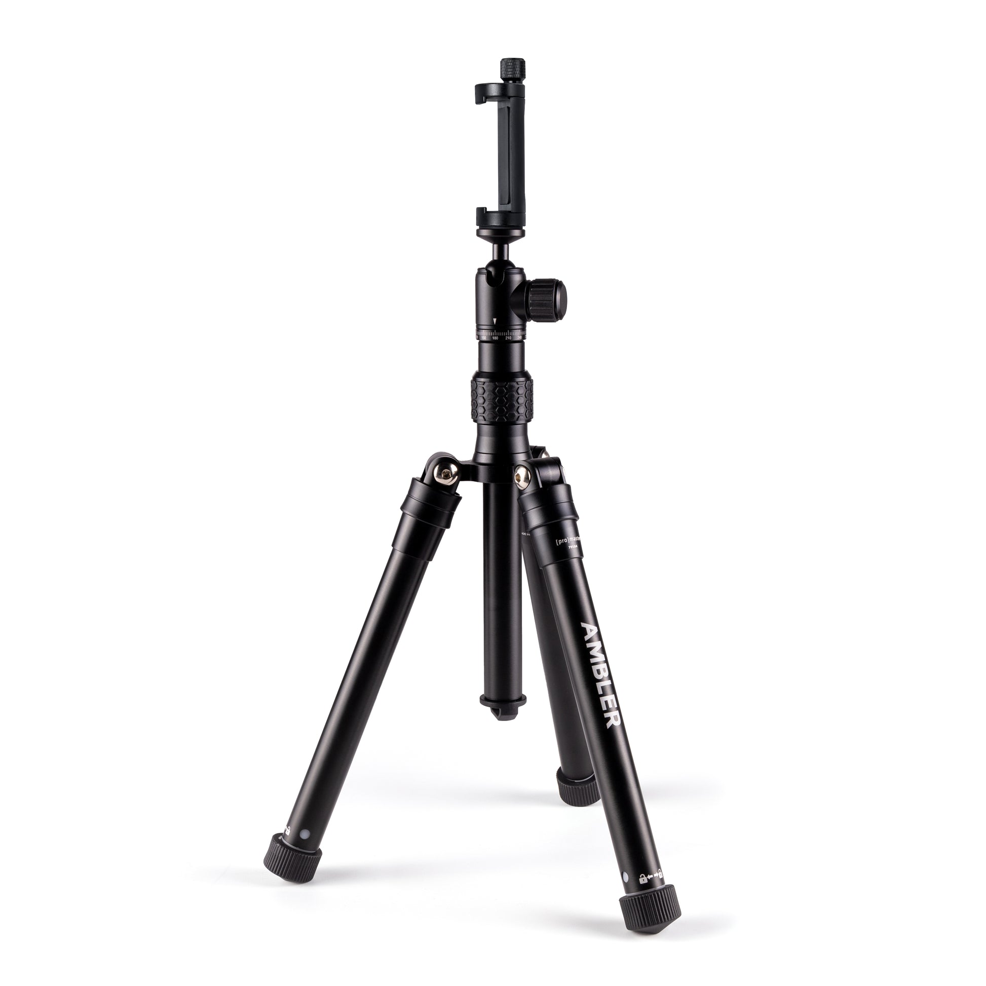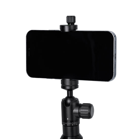 Phone, or camera? Yes. Attach your camera directly to the integrated ball head’s ¼”-20 connection – the Ambler can support 1.5 lbs to accommodate a variety of smaller cameras. Or, use the included phone clamp – it fits nearly every phone on the market even with a case.