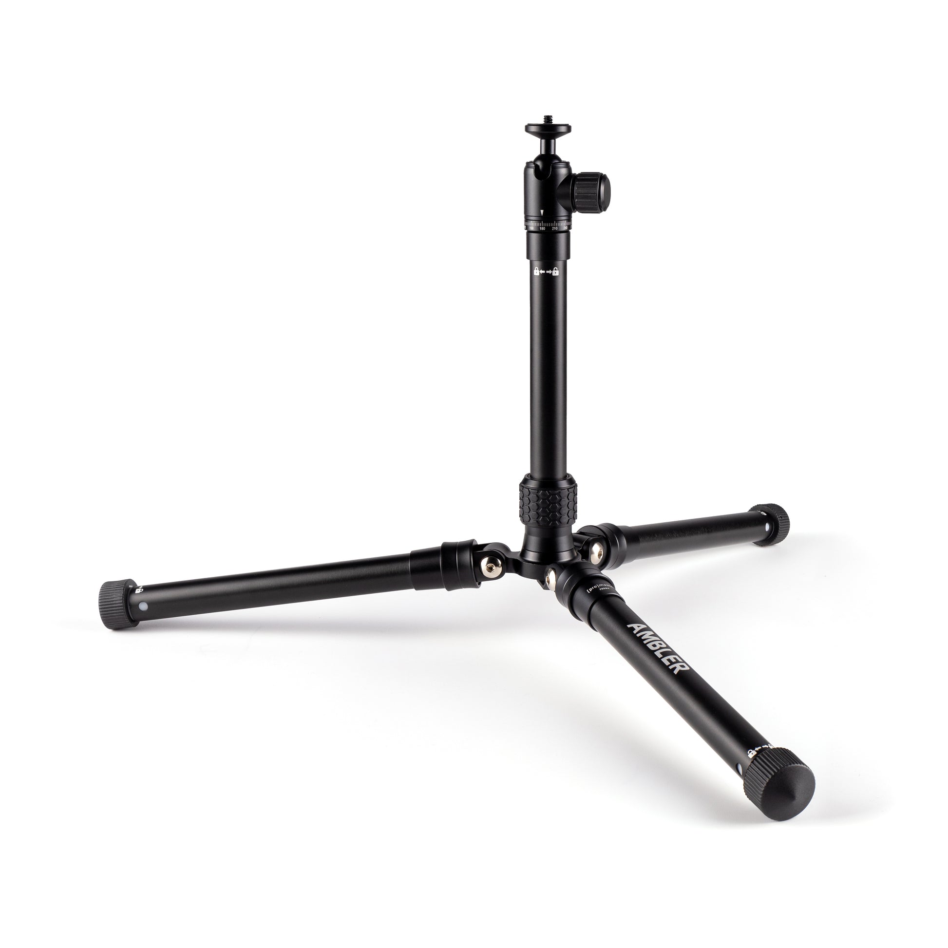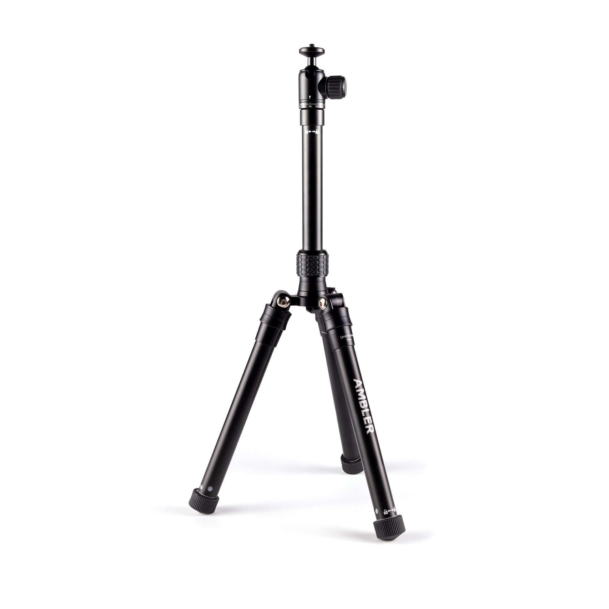 Rapid deployment: Unlike standard tripods with twist or flip locks for each section, all it takes is a twist of the wrist to fully extend or collapse the Ambler’s telescoping 5-section legs and center column. Simply turn the end of a leg (or the top of the center column) to the left, extend it to your desired length, and twist it back to the right to lock it in place – it’s incredibly fast and easy.