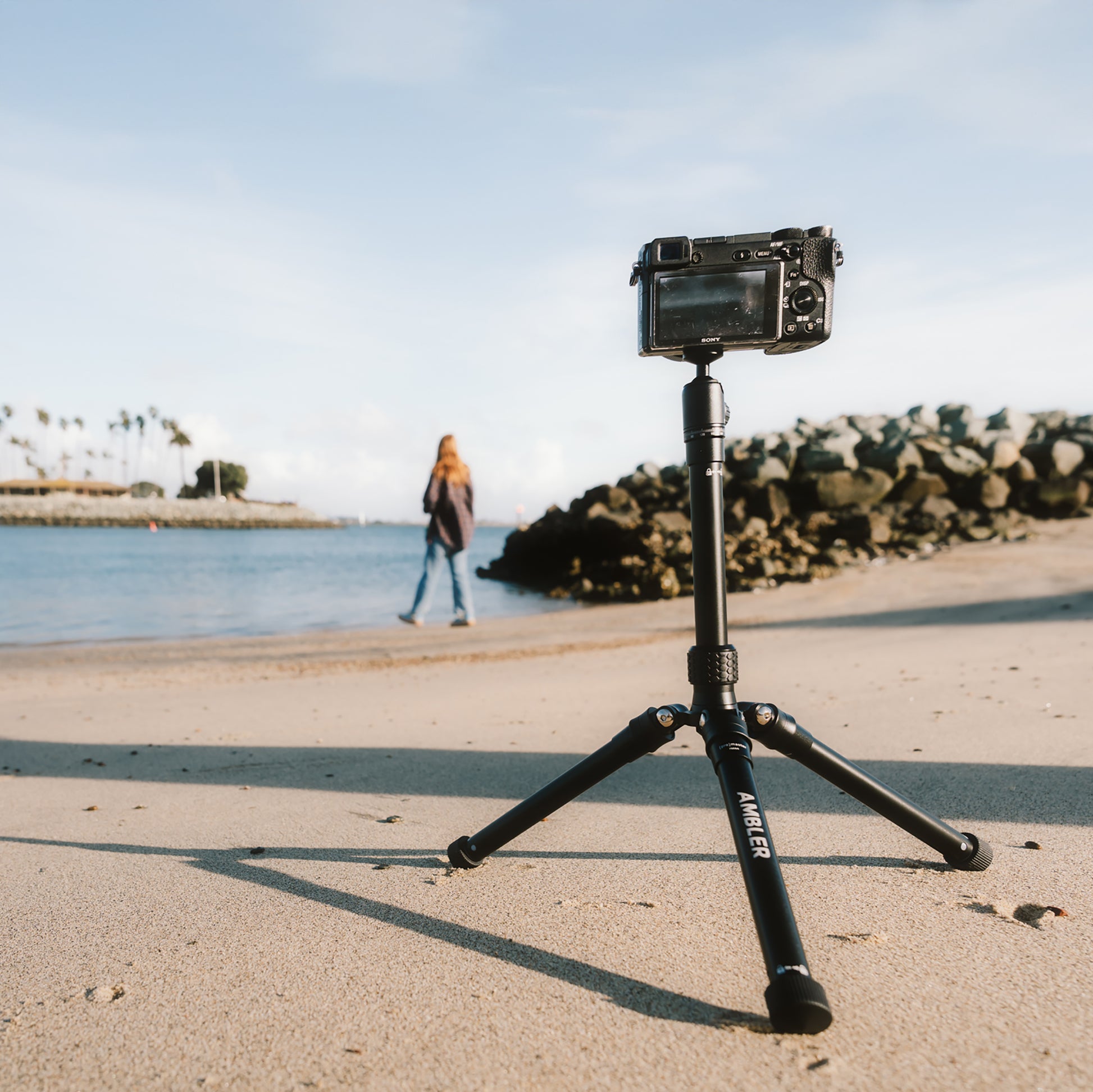 Note: The Ambler is designed for compact cameras and phones rather than heavier, full-sized cameras - its maximum load capacity is 1.5 lbs.