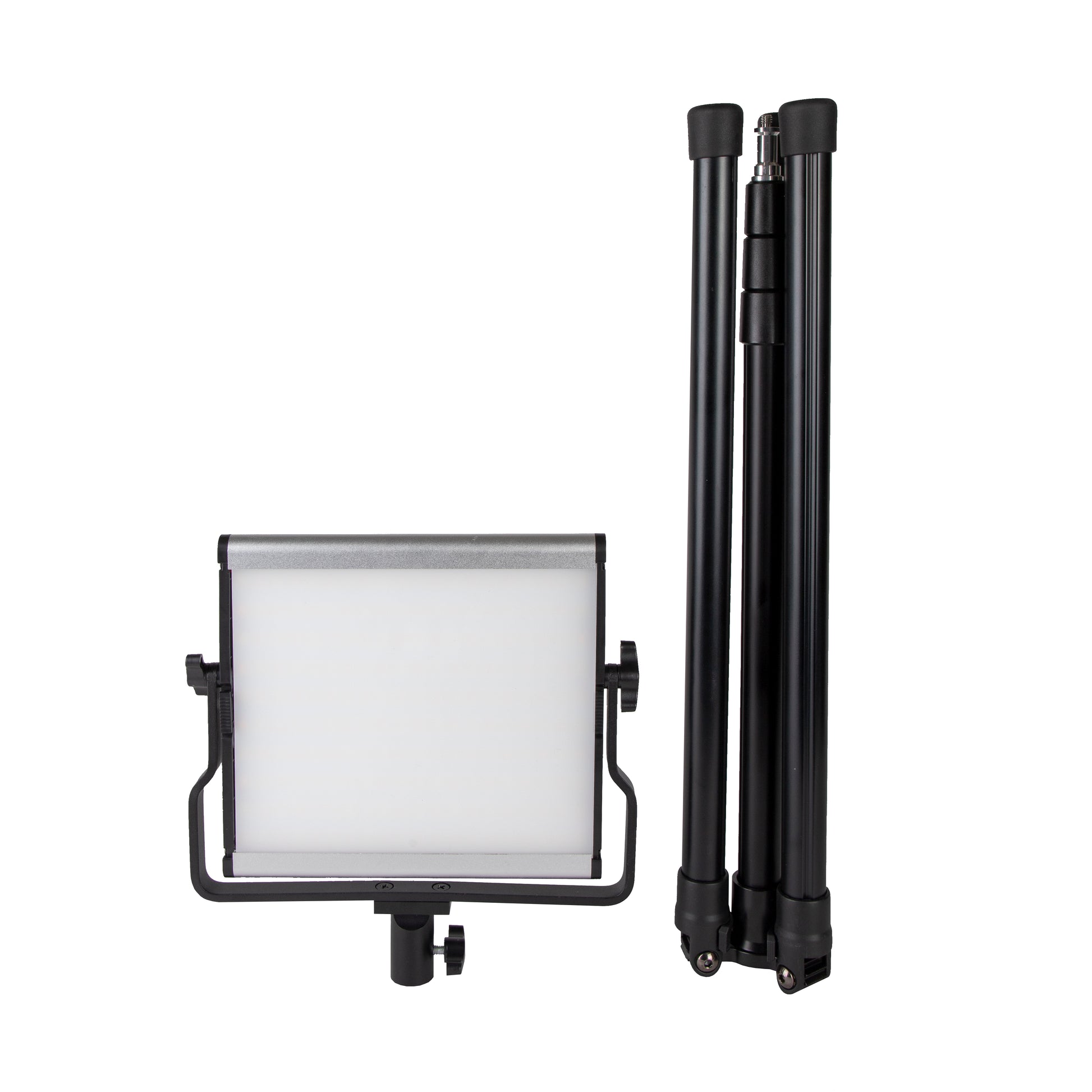 The two included light stands are very compact (less than 20" long when folded) yet quite sturdy. They have independently adjustable legs to help you stabilize the stands on uneven ground when working outdoors. Their maximum height of 79" and minimum height of 20 3/4" provide great flexibility with the placement of each light.