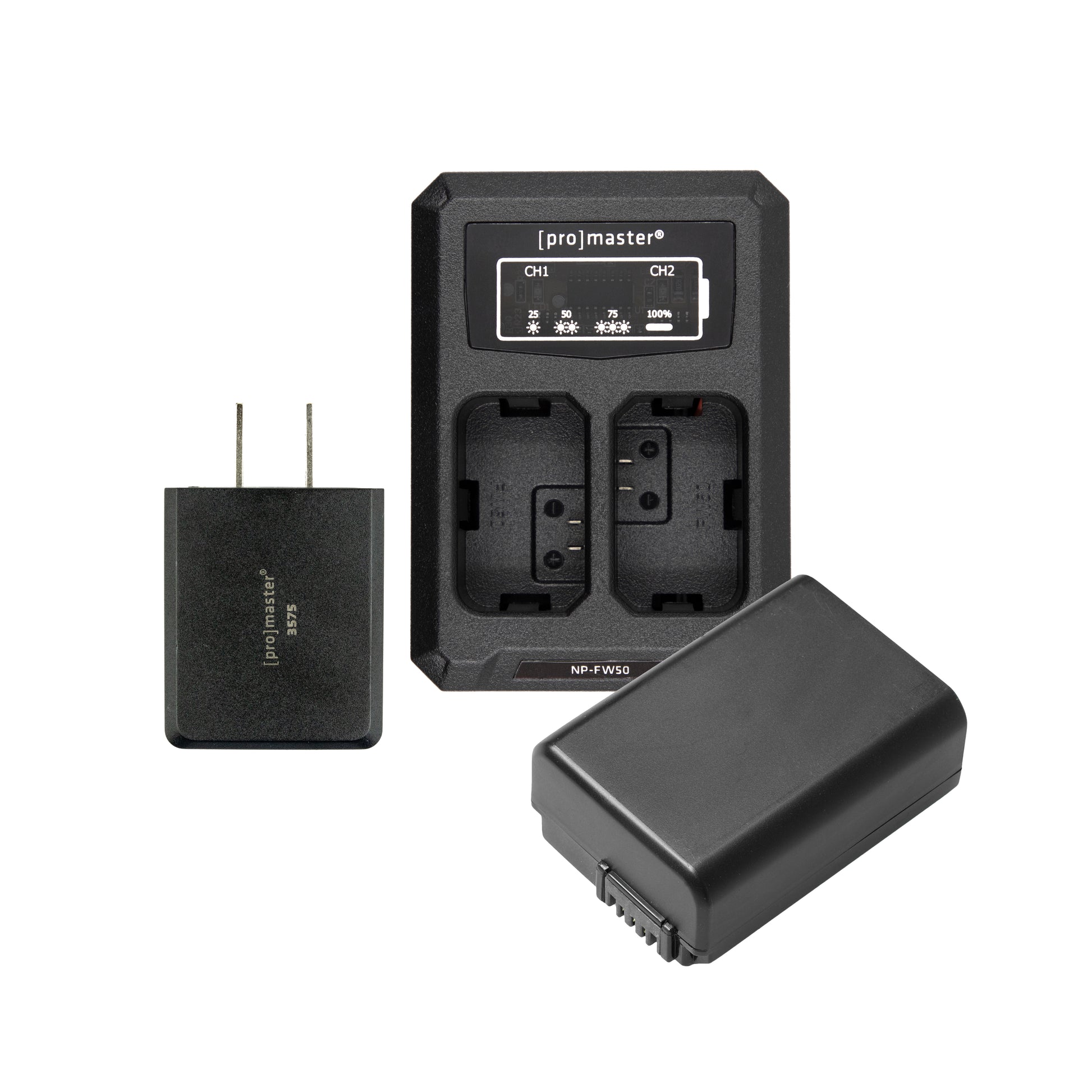 The ProMaster Battery & Charger Kit is a terrific companion for ensuring you always have plenty of power for your camera. It includes a Dually charger, an AC adapter, and a high-quality lithium-ion battery for use in cameras that accept the Sony NP-FW50.