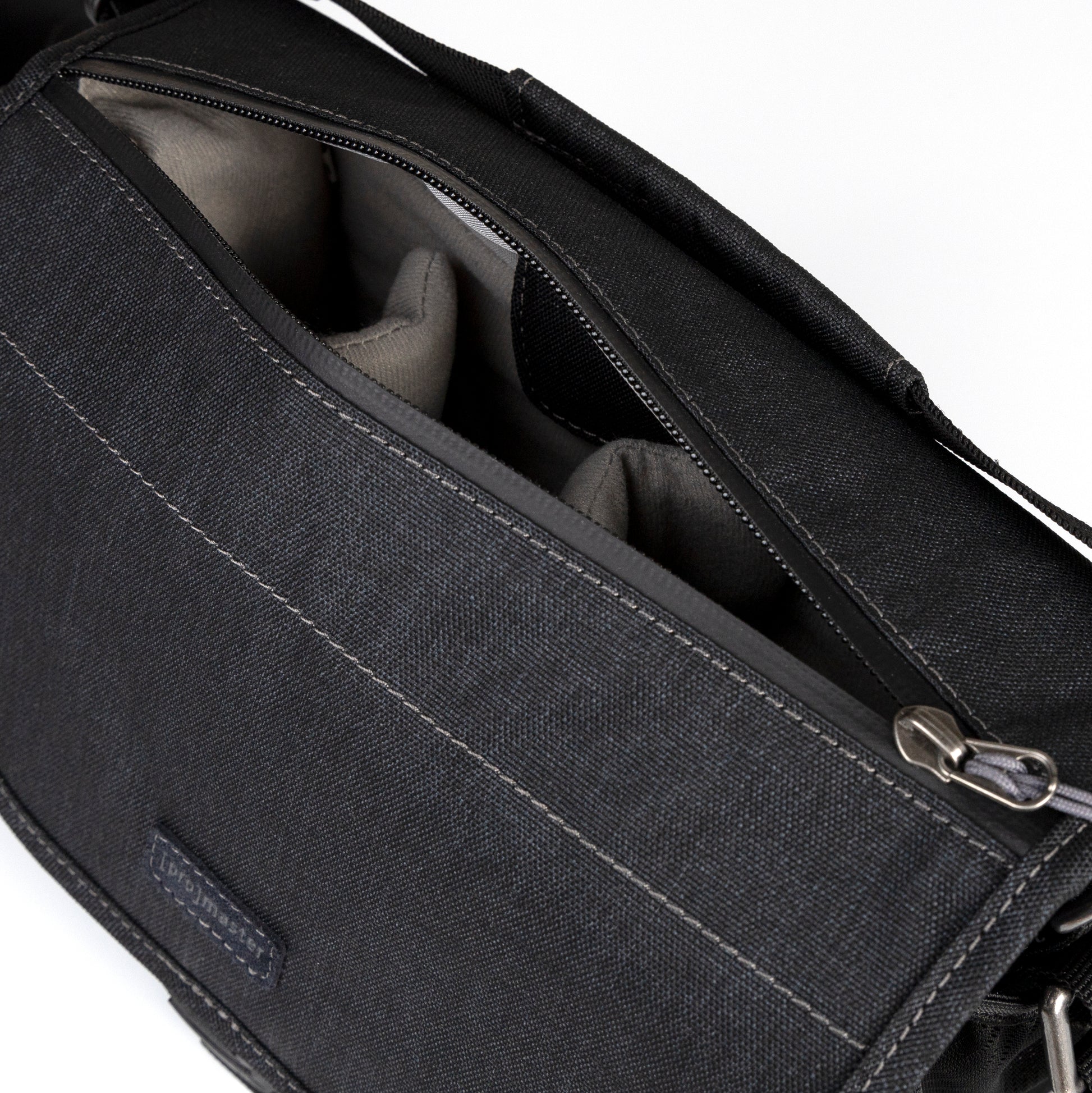 The Blue Ridge series blends the lines of style and functionality quite well. Lots of storage space for its size, and a nifty magnetic latch for one hand to quickly open for access. Alternatively, unzip the top of the bag for direct access to the main camera compartment.