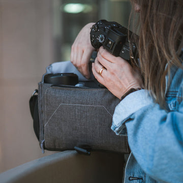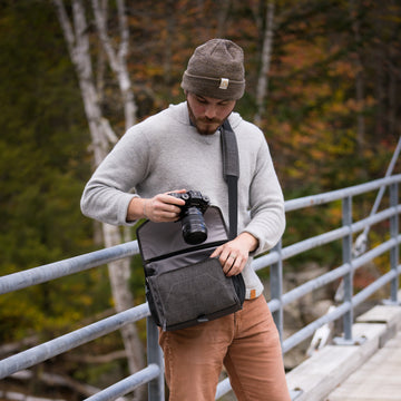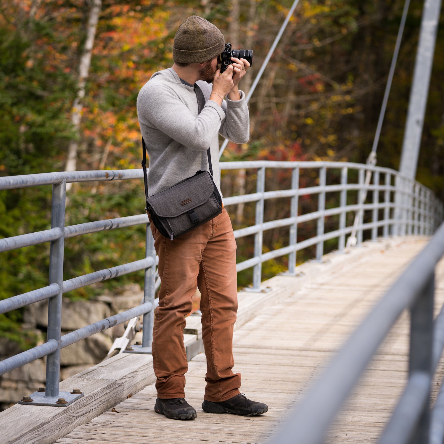 The Blue Ridge series blends the lines of style and functionality quite well. Lots of storage space for its size, and a nifty magnetic latch for one hand to quickly open for access. Alternatively, unzip the top of the bag for direct access to the main camera compartment.