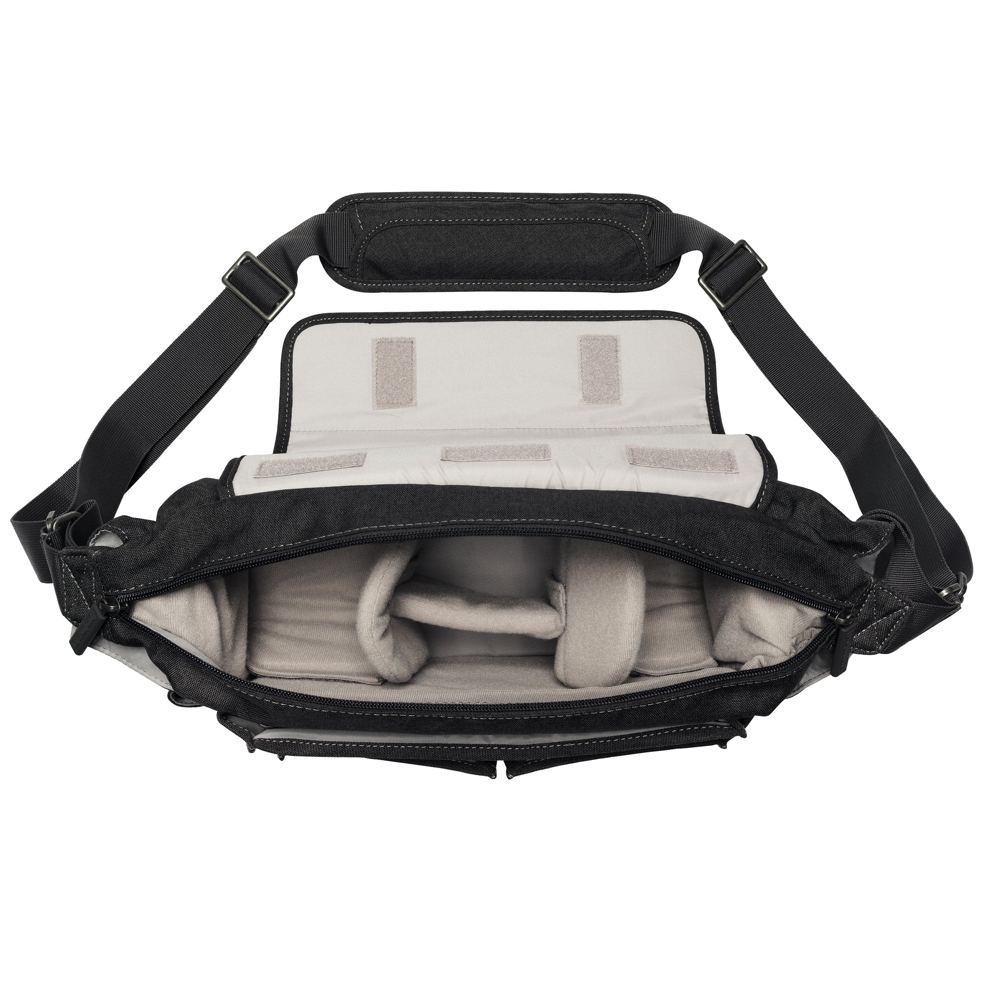 - Outside pockets make lens changes a snap.