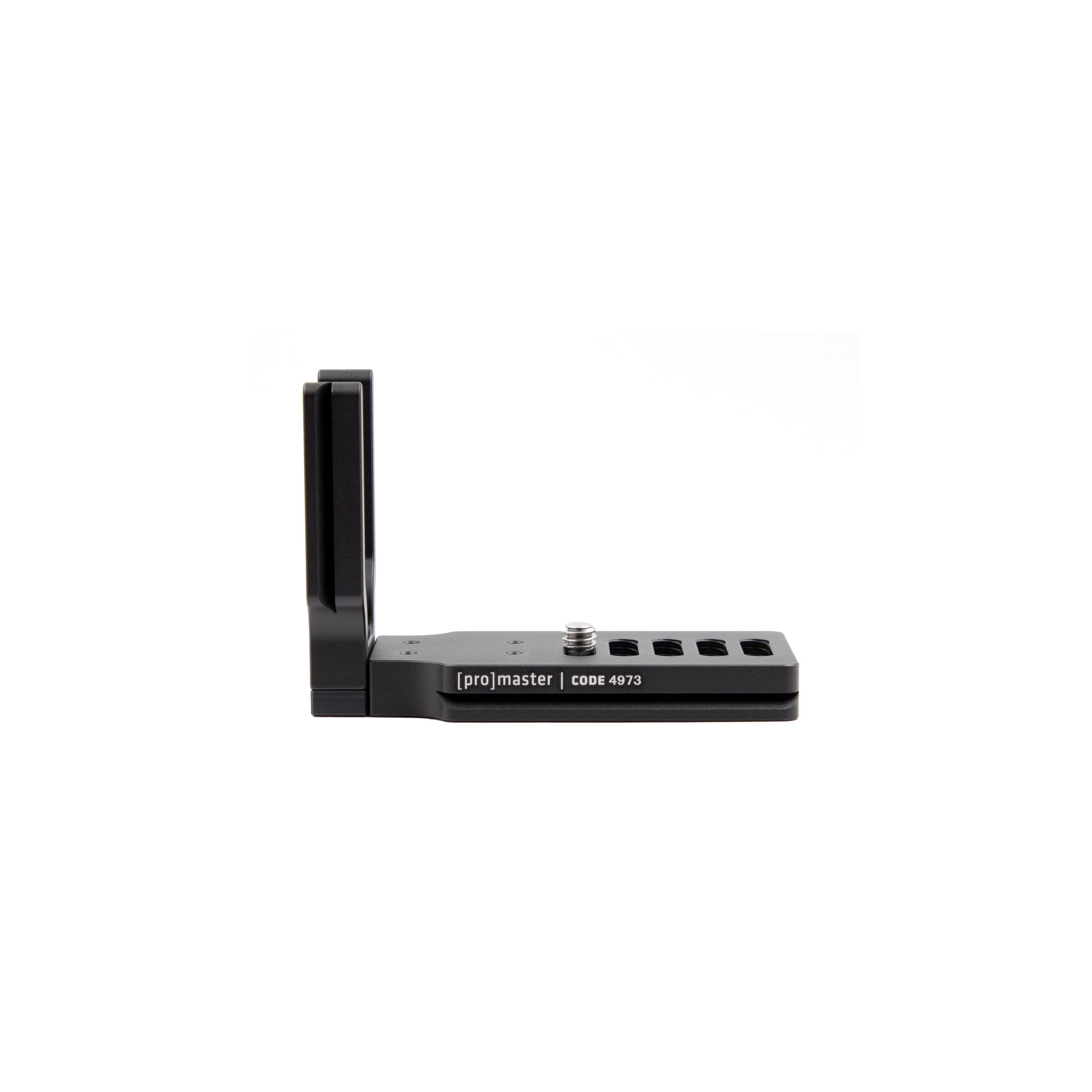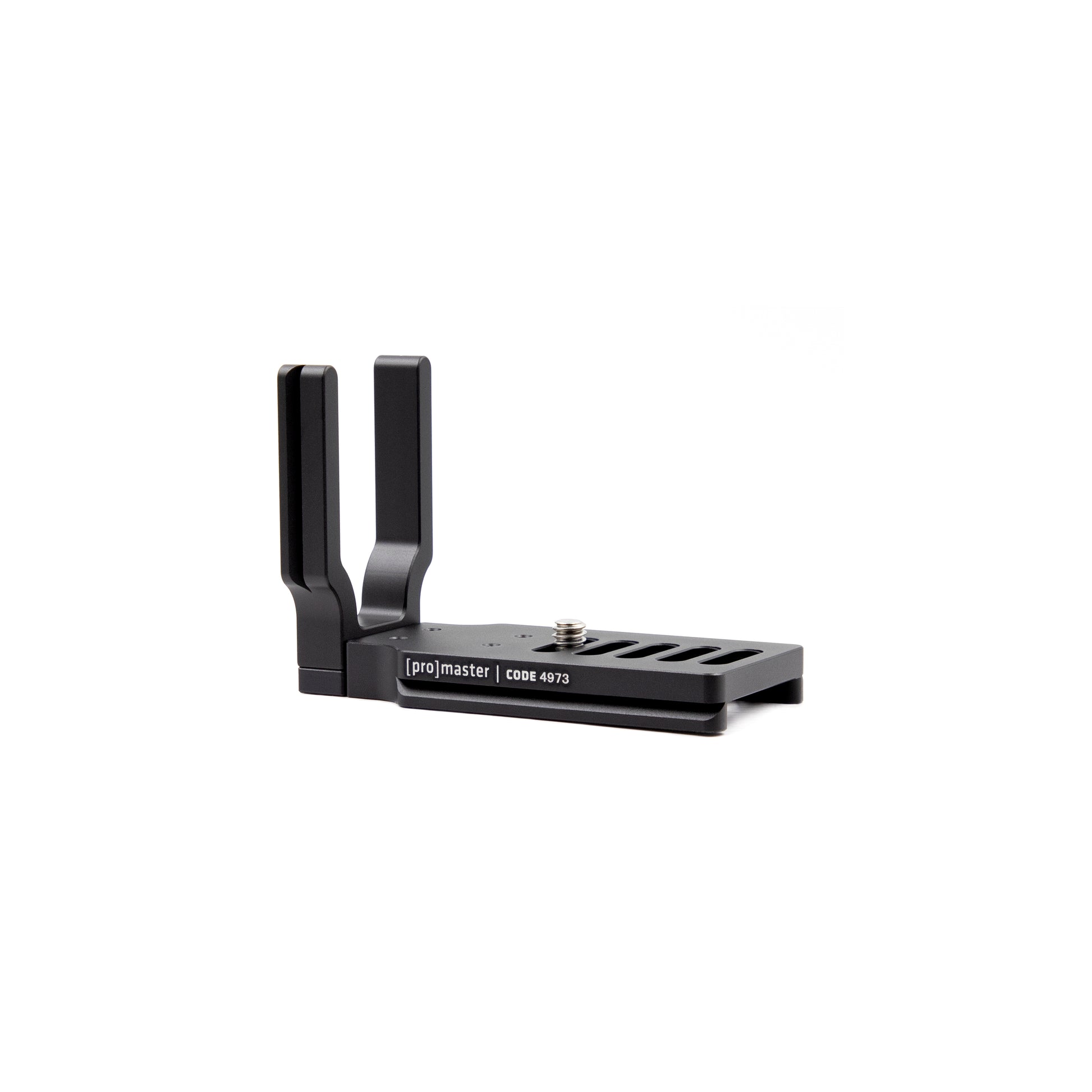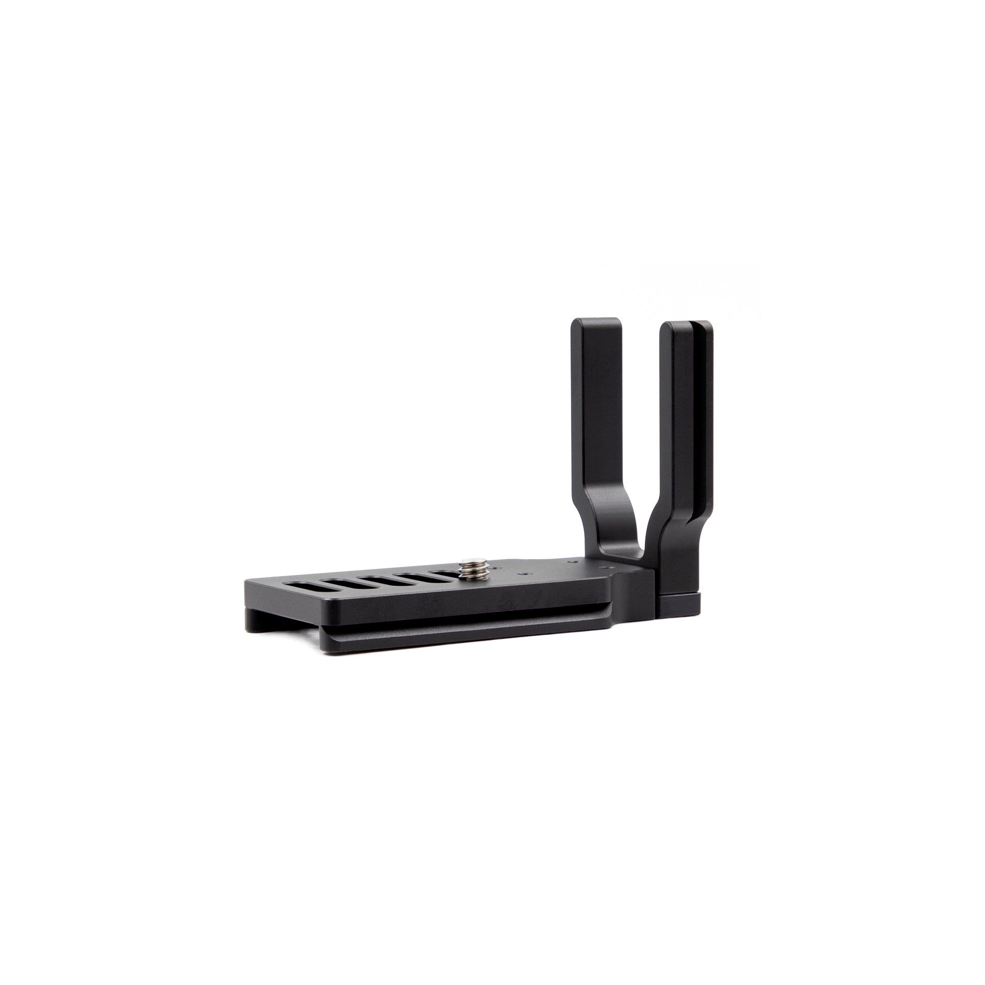 ProMaster’s unique, three-piece design allows the side plate of the Small Complete-L Bracket to be positioned in one of two ways. The normal position places the side plate very close to the left-hand side of the camera. The extended position places the side plate about ¾” further away from the left-hand side of the camera for extra spacing and better access to the camera’s connection ports. The side plate can also be completely removed from the baseplate when needed.