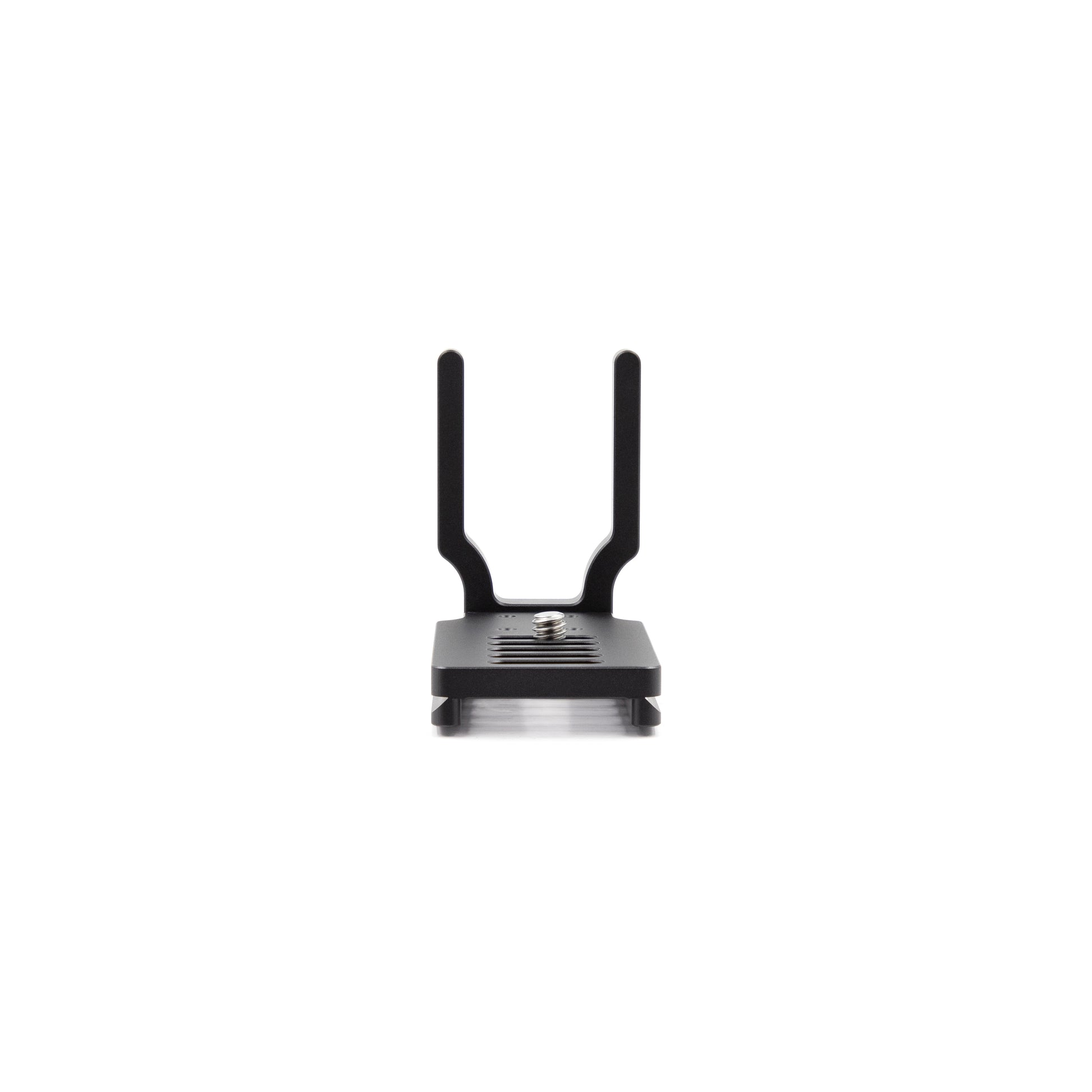--The baseplate mounts to the camera using a new universal design. Five individual slots are located on the baseplate, giving an incredible amount of left-to-right and front-to-back positioning. It is also intentionally short, leaving room to open and close the camera's battery door while the bracket is mounted.