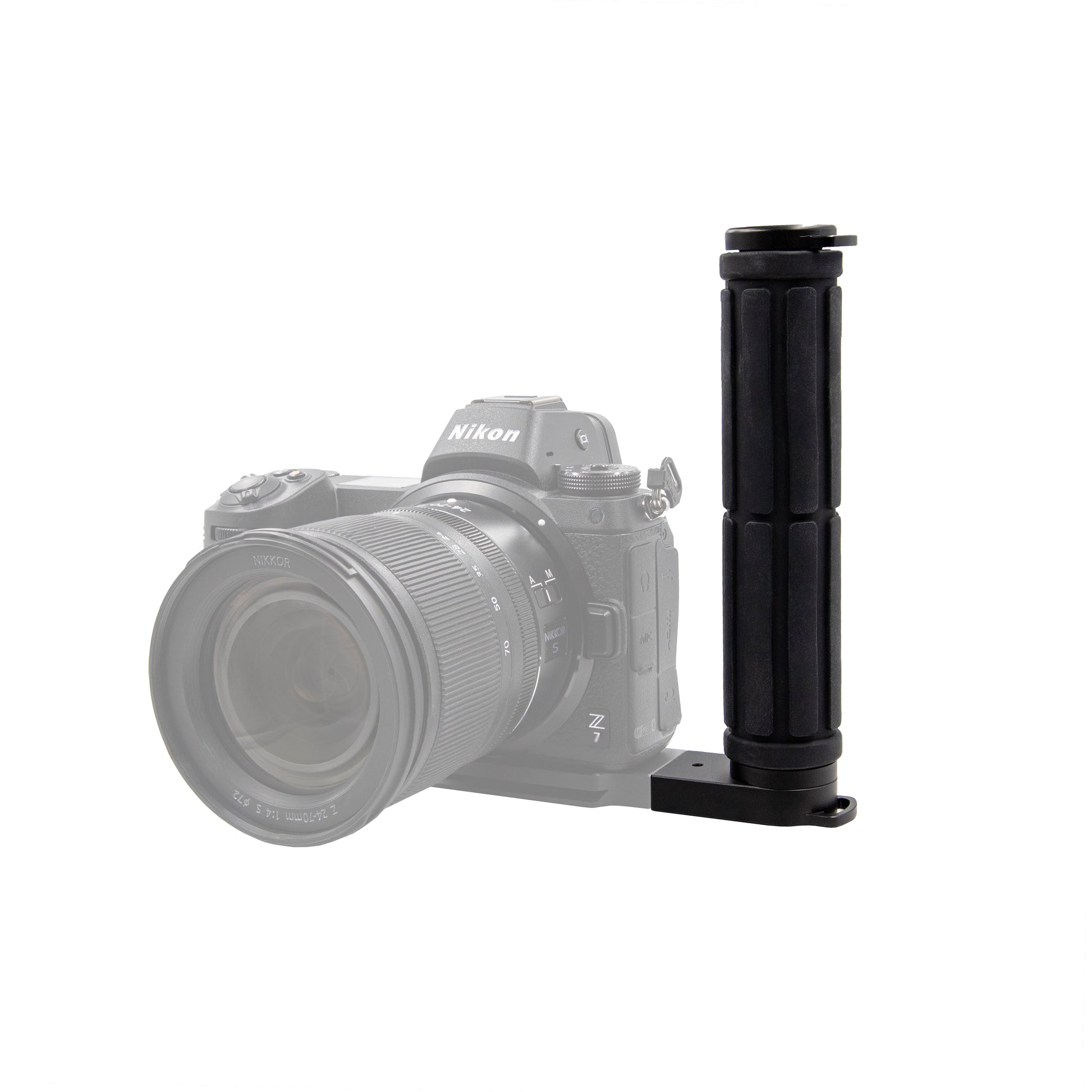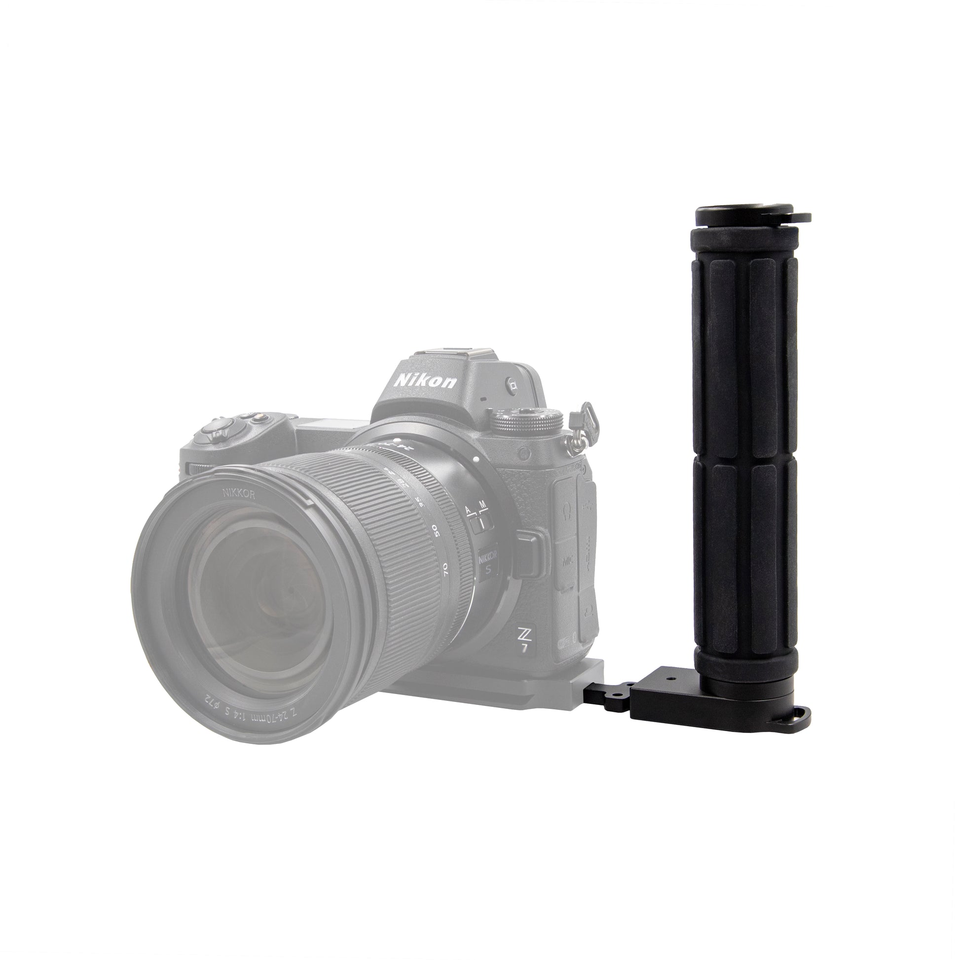 The ProMaster Complete-L Hand Grip works with a Complete-L bracket to provide a large left-hand hold for your camera. This is a terrific way to firmly hold the camera steady. This grip connects to the baseplate of a Complete-L bracket by replacing its included side plate. Simply unbolt the side plate and bolt-in the grip.