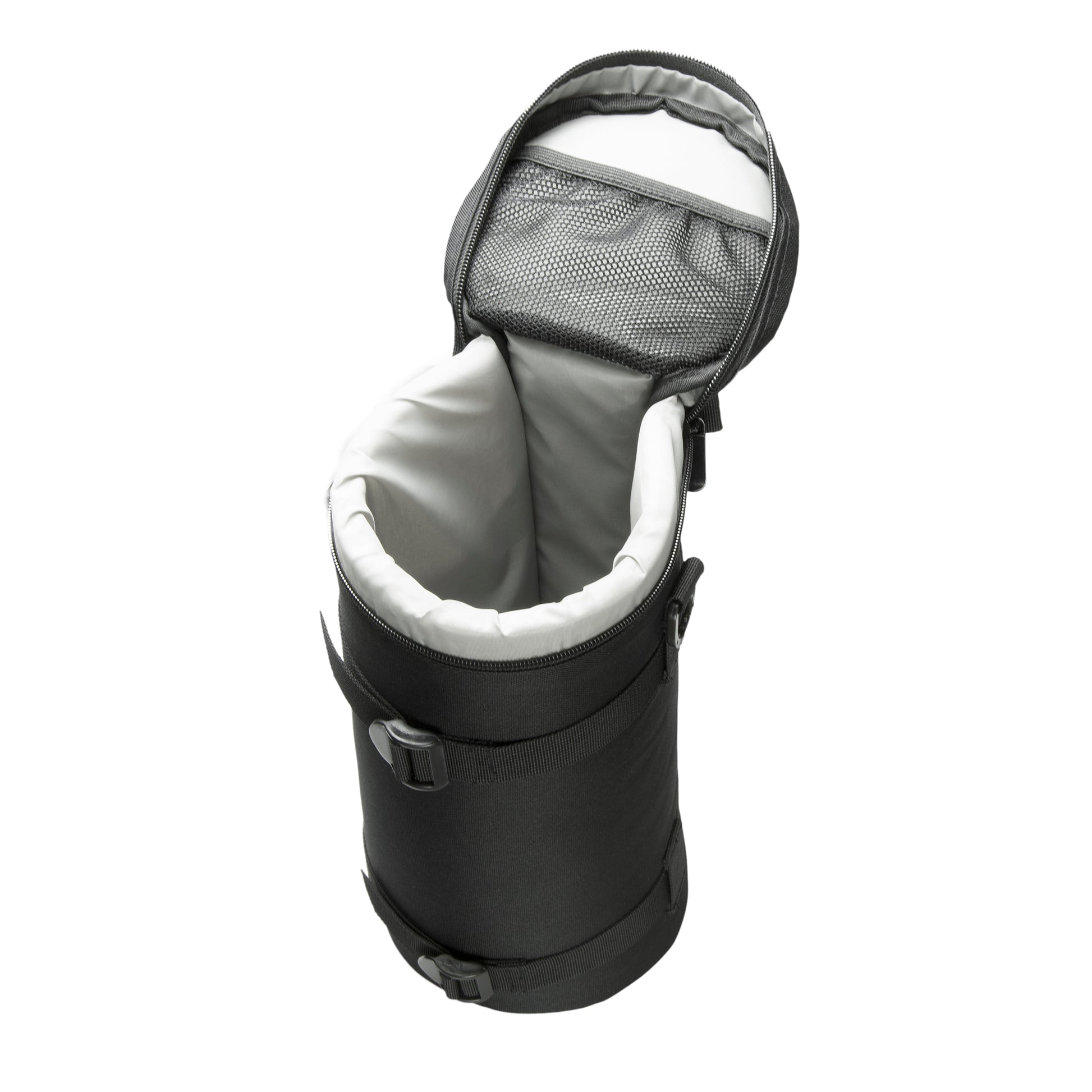 ProMaster's Deluxe Lens Case LC7 uses thick, semi-rigid foam padding to absorb bumps and bruises. The lid features an overlapping zipper to help keep dirt and dust out. The outside of the lens case uses a durable, heavy duty cordura material while the inside is made of a smoother, gentler nylon that's easy on your lens. Two tension straps around the outside allow you to snug the case up for a close fit. You can attach the deluxe lens case to a belt or bag using the belt loop on the back of the case, which employs a hook and loop fastening system to open and close securely. Store your lens cap or filter in the convenient mesh pocket underneath the lid. This case also includes a shoulder strap and has two D-rings sewn-in to provide additional attachment points for the strap or to connect with other bag & harness systems.