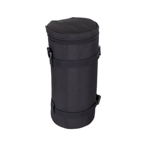 The ProMaster LC9 Deluxe Lens Case uses heavy-duty Cordura on the exterior and smooth nylon inside that is gentle on lenses. The case incorporates thick, semi-rigid foam padding to absorb bumps and bruises. The lid features an overlapping zipper to keep dirt and dust out, and a mesh pocket underneath provides a convenient place to store a filter. Two tension straps around the outside allow you to snug the case up for a close fit. You can attach the deluxe lens case to a belt or bag using the belt loop on the case's back, which employs a hook and loop fastening system to open and close securely. The case includes a shoulder strap and has two D-rings sewn-in to provide additional strap attachment points or connect with other bag & harness systems. Additionally, the LC9 has a pillow at the bottom of the case which can be removed to accommodate a lens with a teleconverter attached.