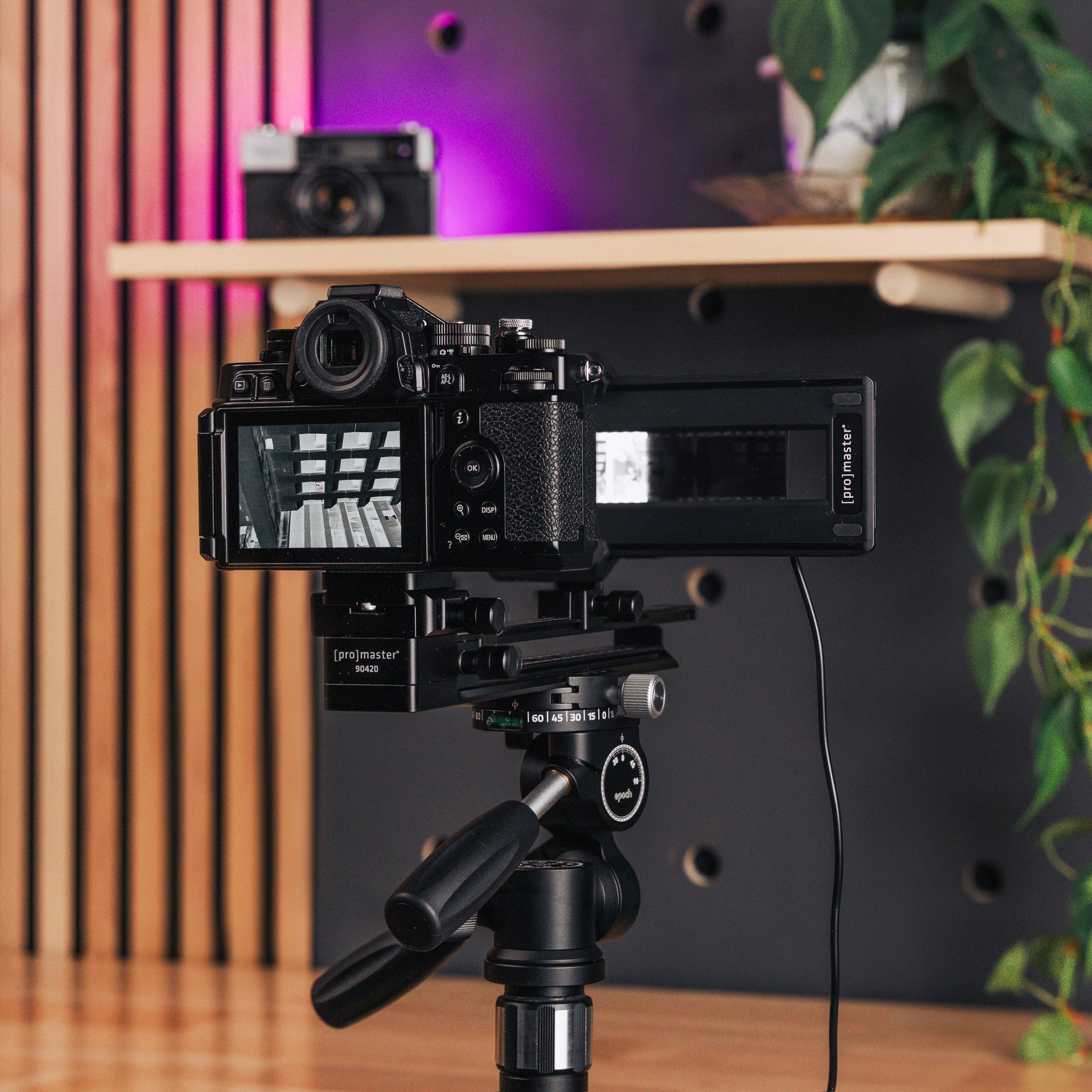 Flatbeds and dedicated film scanners are slow and cumbersome, with clunky proprietary software that can deliver underwhelming results. Instead, use a camera and macro lens with the ProMaster Digitizing Kit to create stunning, high-resolution files that can outperform traditional scanners. Using a modern camera’s sensor and the software of your choice is faster and easier, with better dynamic range and full creative control.