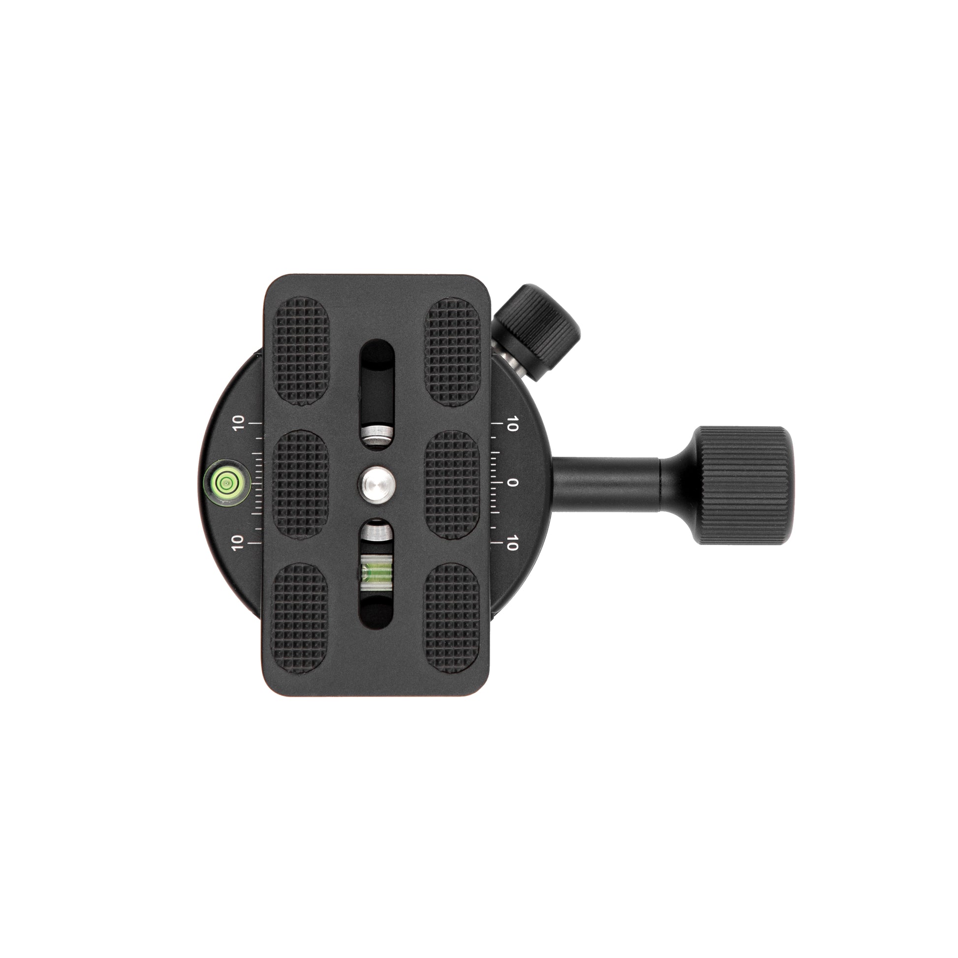 - Etched scales on the panning base, QR receiver, and QR plate allow for precise movements and repeatable setups.