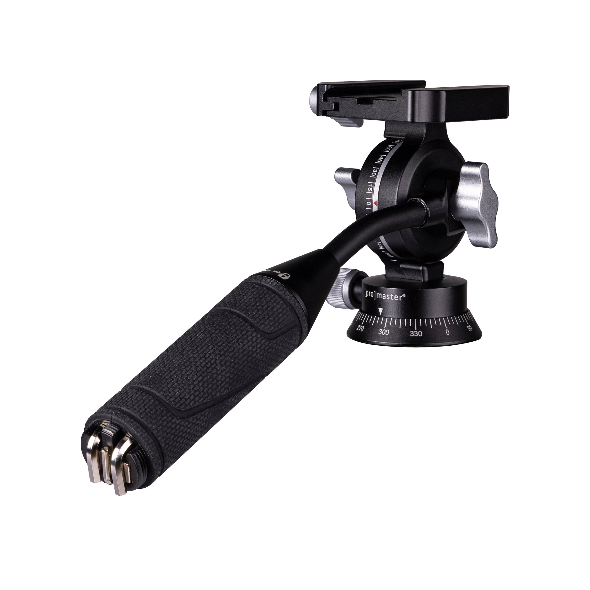 The ProMaster Key Grip Video Head provides smooth pan and tilt adjustments and features a control handle with a soft, comfortable grip. This removable handle is extendable and locks in place with a twist. Unscrew the aluminum cap from the end of the Key Grip handle’s grip to reveal a set of hex keys! Two 4mm hex keys can be used together to adjust the bolts on a tripod leg or individually to secure the included quick release plate to a camera or cage. The included 2.5mm hex key can be used to adjust grub screws when mounting the head to a tripod or monopod.