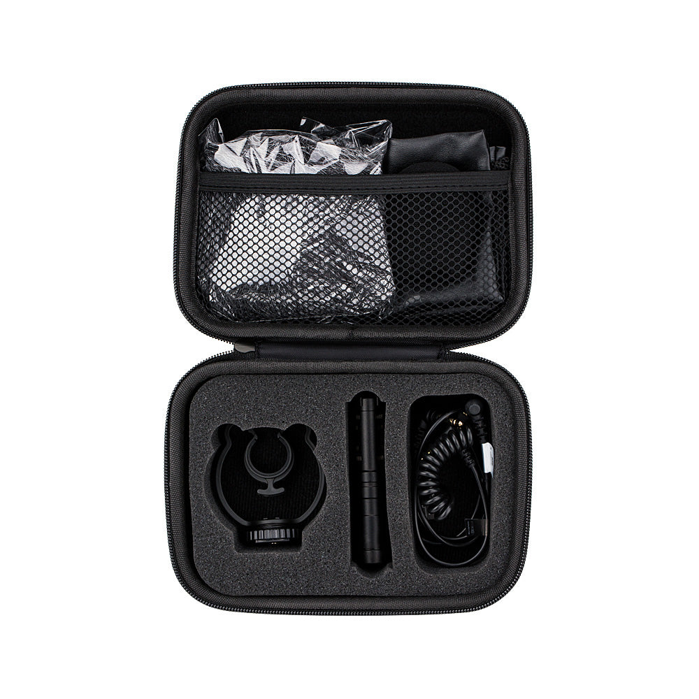 This kit also includes 3 different, coiled audio cables making it highly adaptable to use with a variety of recording devices from cameras to phones and more. Each audio cable in the kit is labeled on each side so you know exactly what the connector is for.