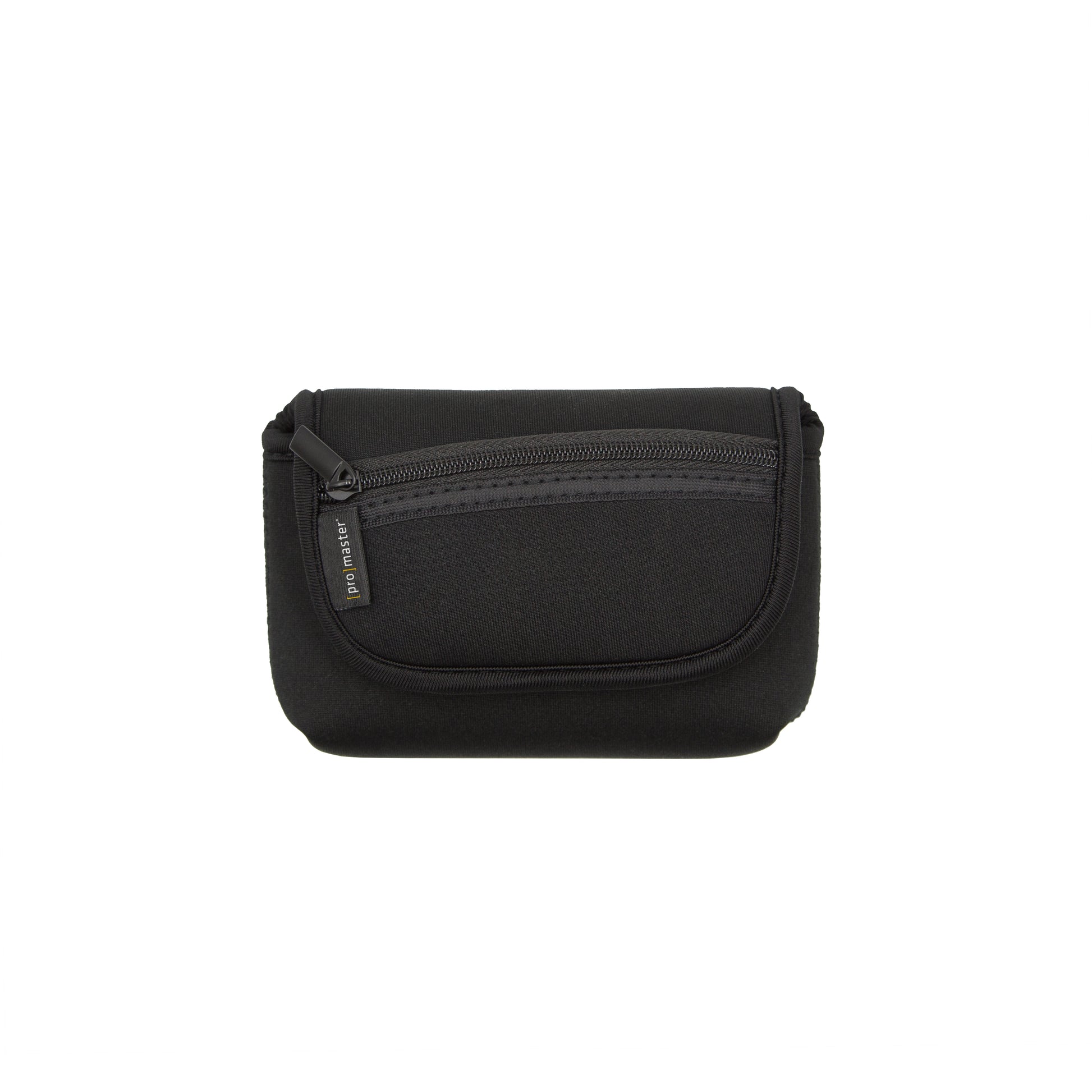 The ProMaster NEOPRENE COMPACT CAMERA POUCH offers lightweight protection for your compact camera along with fast access. The soft, elastic neoprene protects your camera from scratches and scrapes without adding the bulk of a traditional camera case. A zippered compartment holds extra camera accessories such as a cleaning cloth. A small, internal pocket is great for holding a spare memory card or spare battery.