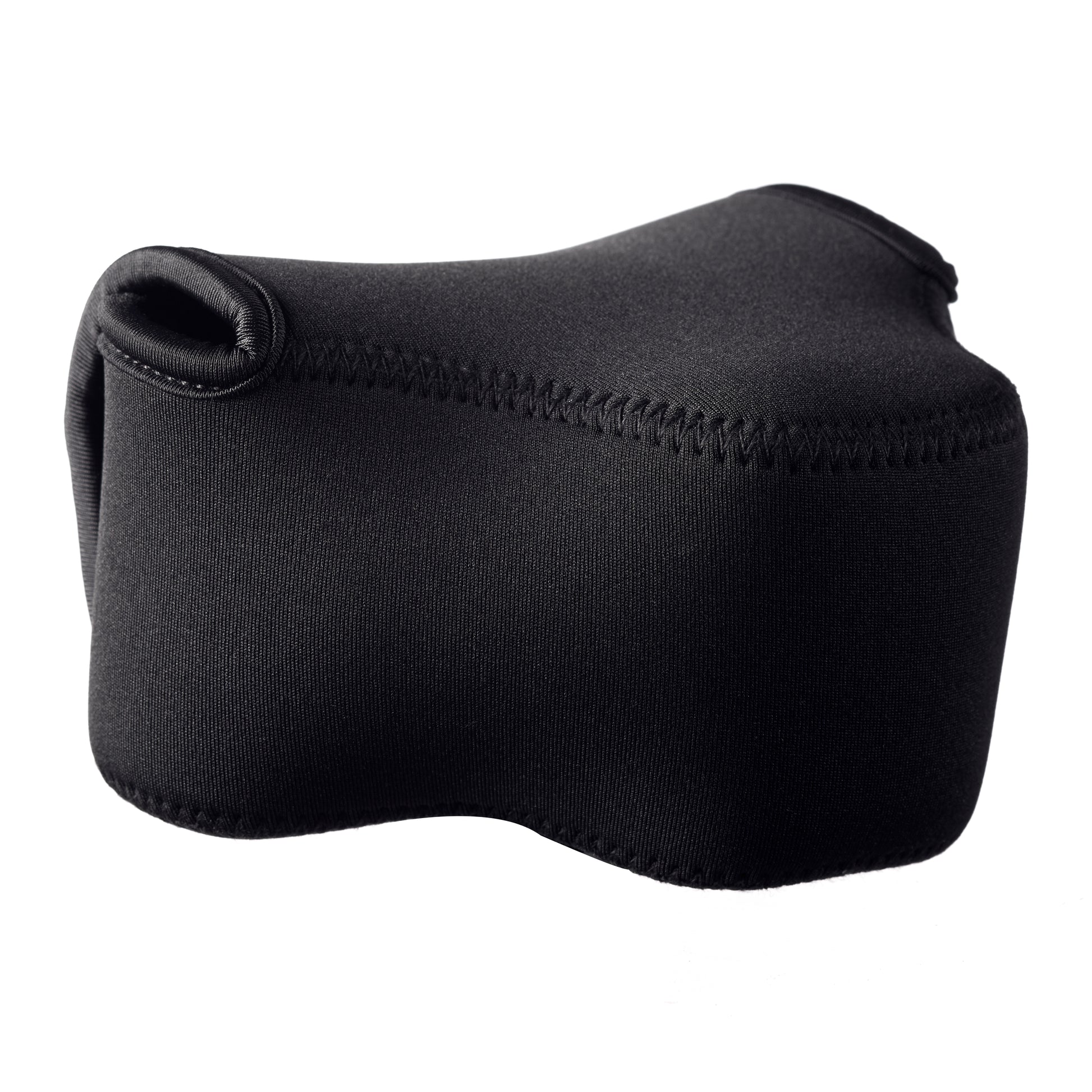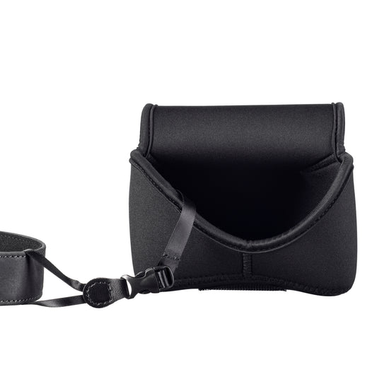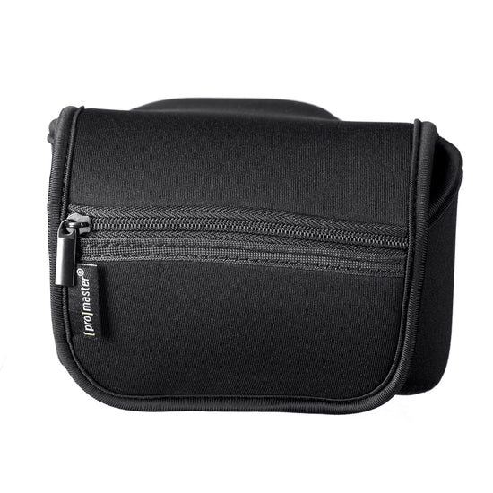 The ProMaster NEOPRENE MIRRORLESS CAMERA POUCH offers lightweight protection for your mirrorless camera along with fast access. The soft, elastic neoprene protects your camera from scratches and scrapes without adding the bulk of a traditional camera case. A zippered compartment holds extra camera accessories. And a built-in tether (with quick release buckle) connects the pouch to your camera's neck strap so it can hang out of the way without getting lost.