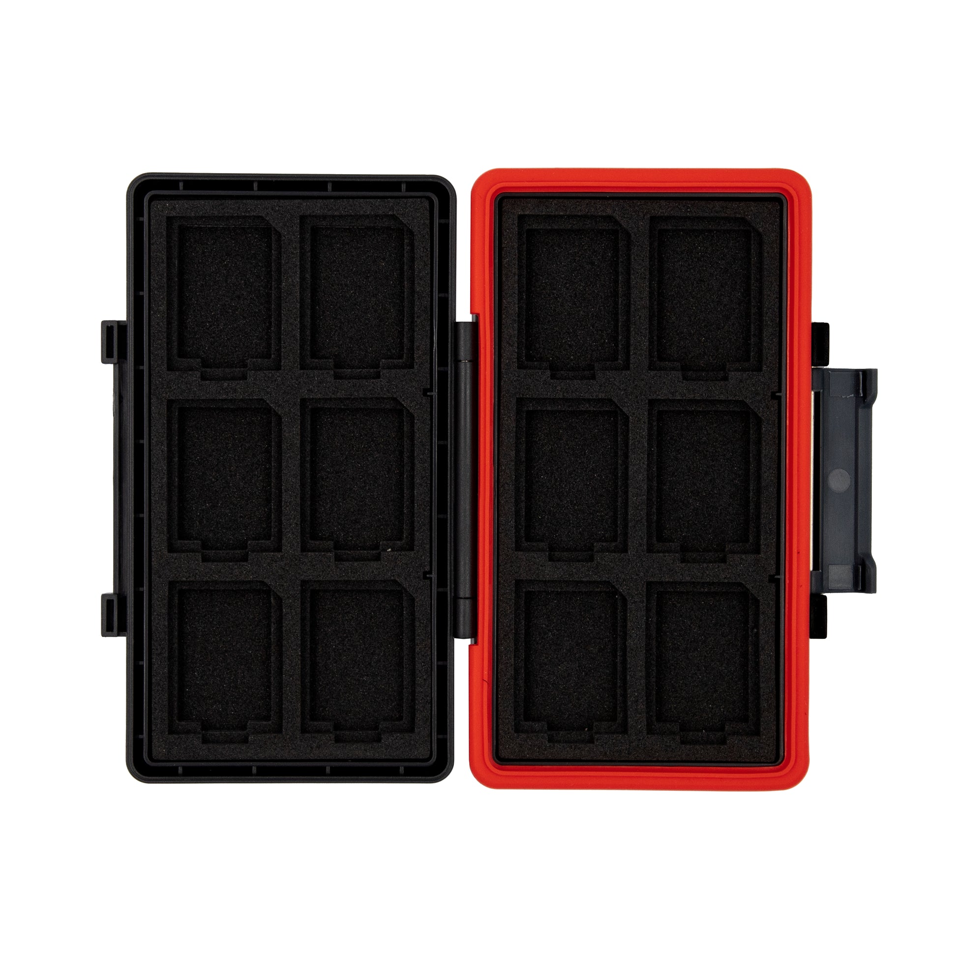 Soft foam inserts cradle and organize your memory cards inside the case. From the outside, its hard plastic shell withstands drops, impact, dirt, and moisture. In fact, this case is waterproof and it floats!