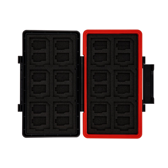 - Holds up to 12 SD and up to 24 micro SD memory cards