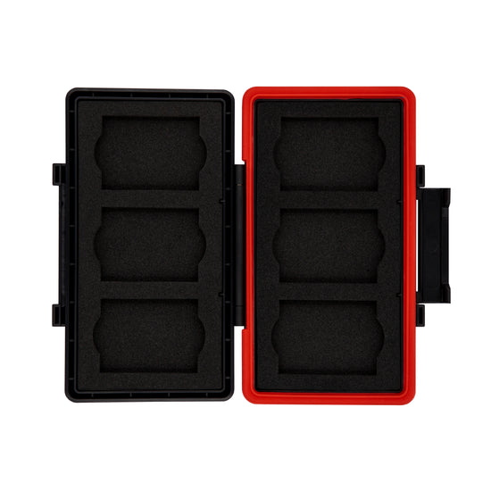 Soft foam inserts cradle and organize your memory cards inside the case. From the outside, its hard plastic shell withstands drops, impact, dirt, and moisture. In fact, this case is waterproof and it floats!