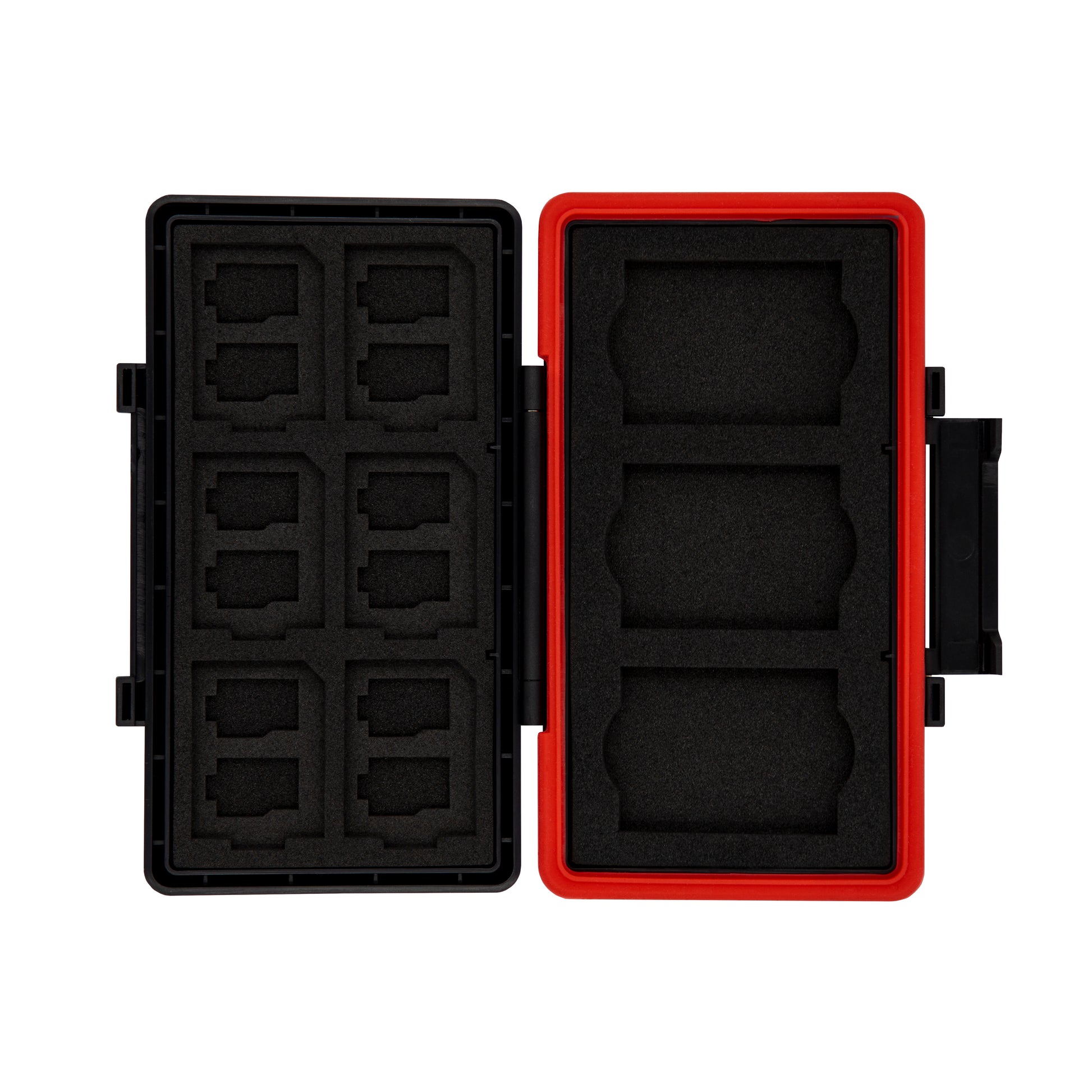Soft foam inserts cradle and organize your memory cards inside the case. From the outside, its hard plastic shell withstands drops, impact, dirt, and moisture. In fact, this case is waterproof and it floats!