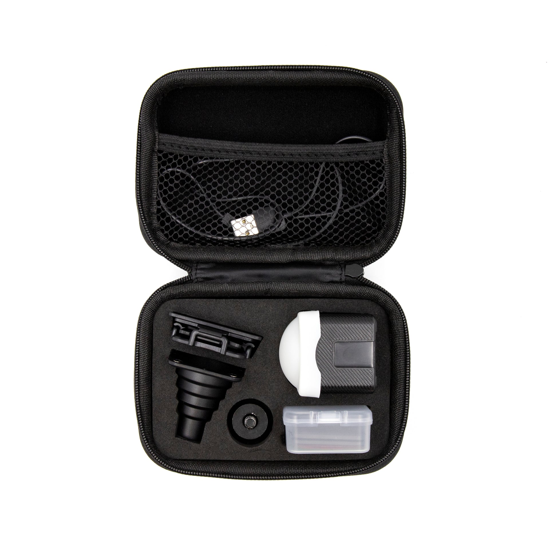 The Small Block has an integrated cold shoe at the top and a built-in 1/4”-20 mounting port at its base for attaching the light to a tripod, light stand, or various accessories including the provided cold foot. In addition, the back of the Small Block has an integrated magnet so that it can be stuck to metal surfaces.