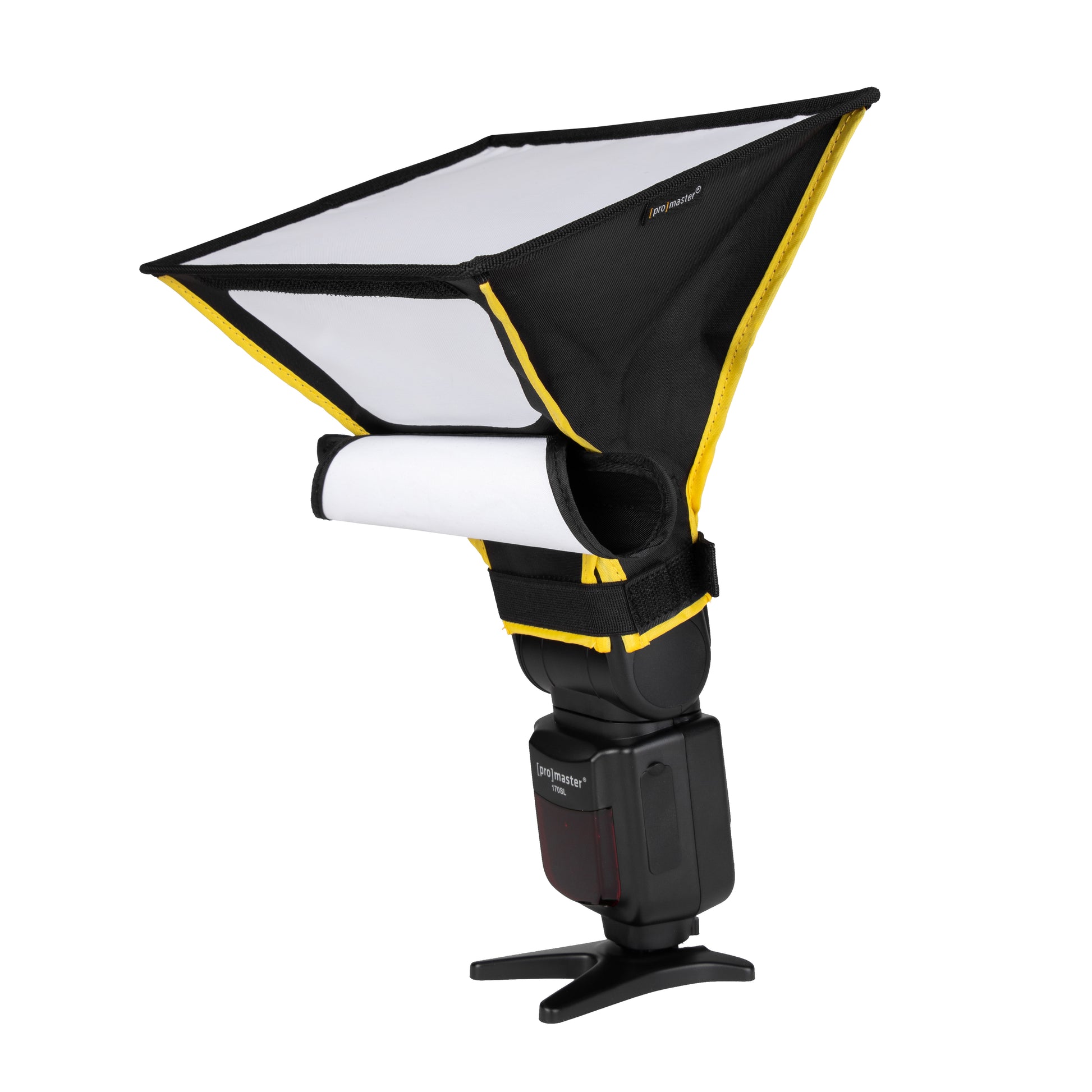 The PROMASTER SPEEDLIGHT SOFTBOX creates pleasing portraits by softening your speedlight's illumination. Its internal baffle can be adjusted for softer light. The special bounce feature works by directing a main light towards the ceiling (for a large, soft fill) while the open bounce panel directs some light forward to open shadows and make your subject stand out.
