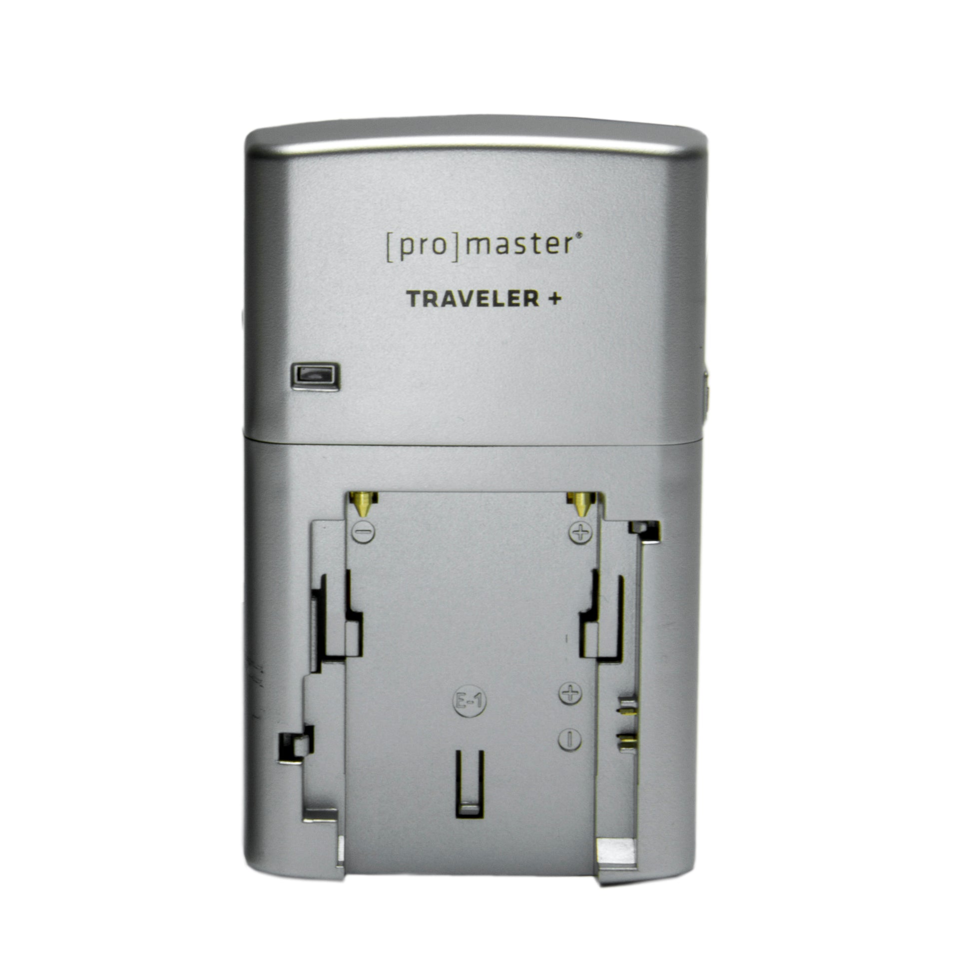 The ProMaster TRAVELER + LITHIUM ION BATTERY CHARGER is a versatile, compact, go anywhere charger for your Li-ION digital camera and camcorder batteries. The Traveler + charger features a built in switching power supply that can be powered from either 110v - 240v AC or 12V DC (optional DC power cord required) for true worldwide compatibility. Combined with the USB power output port and its compact size, it makes a PERFECT solution for those on the go or to use at home. The ProMaster Traveler + charger is available in models to fit most Li-ION digital camera batteries.