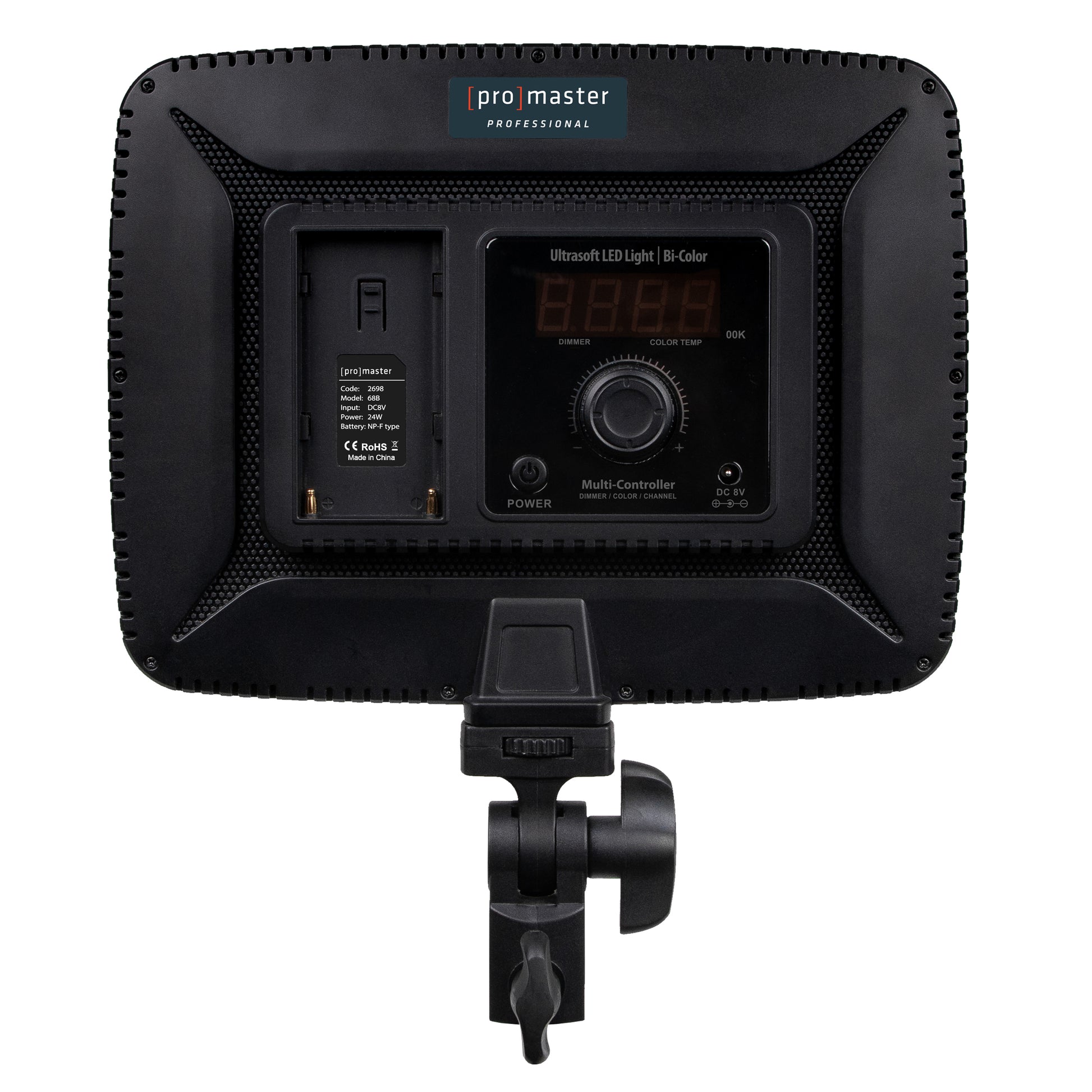 The ProMaster Ultrasoft 68B LED Light is a sophisticated light for professional results on or off camera. It produces extremely soft, pleasing illumination without the need for additional modifiers. With it you can create flattering portraits and beautiful video, and it’s a terrific tool for macro photography. The Bi-Color design lets you to change the color temperature of light from warm to cool in fine increments. Use it to match the color of other, surrounding light or create a special warm or cool glow in your photos and video footage. A remote control is included for wireless operation. With the included AC adapter and battery, you can use the 68B just about anywhere.