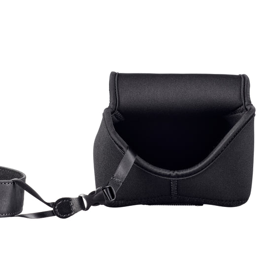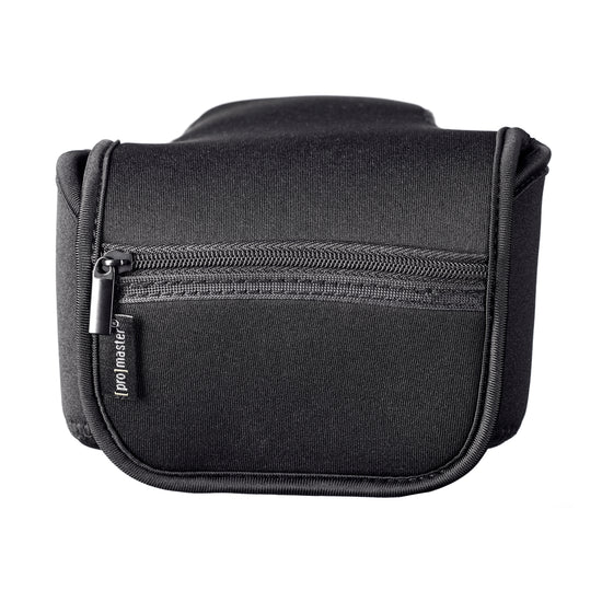 The ProMaster NEOPRENE MIRRORLESS CAMERA POUCH offers lightweight protection for your mirrorless camera along with fast access. The soft, elastic neoprene protects your camera from scratches and scrapes without adding the bulk of a traditional camera case. A zippered compartment holds extra camera accessories. And a built-in tether (with quick release buckle) connects the pouch to your camera's neck strap so it can hang out of the way without getting lost.